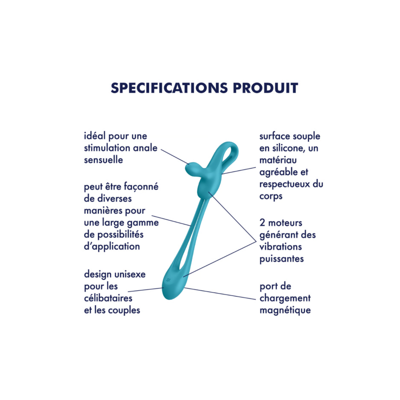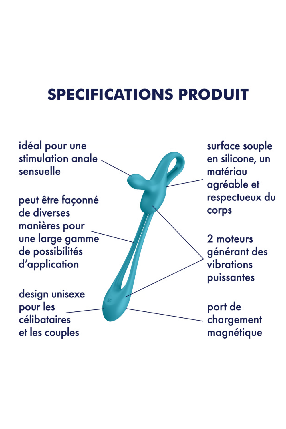 Le Satisfyer Plug & Play 1 est un multivibromasseur innovant et polyvalent, conçu pour offrir une grande variété de stimulations. Grâce à sa forme flexible et modulable, il s’adapte à de nombreuses utilisations, en solo comme en couple.