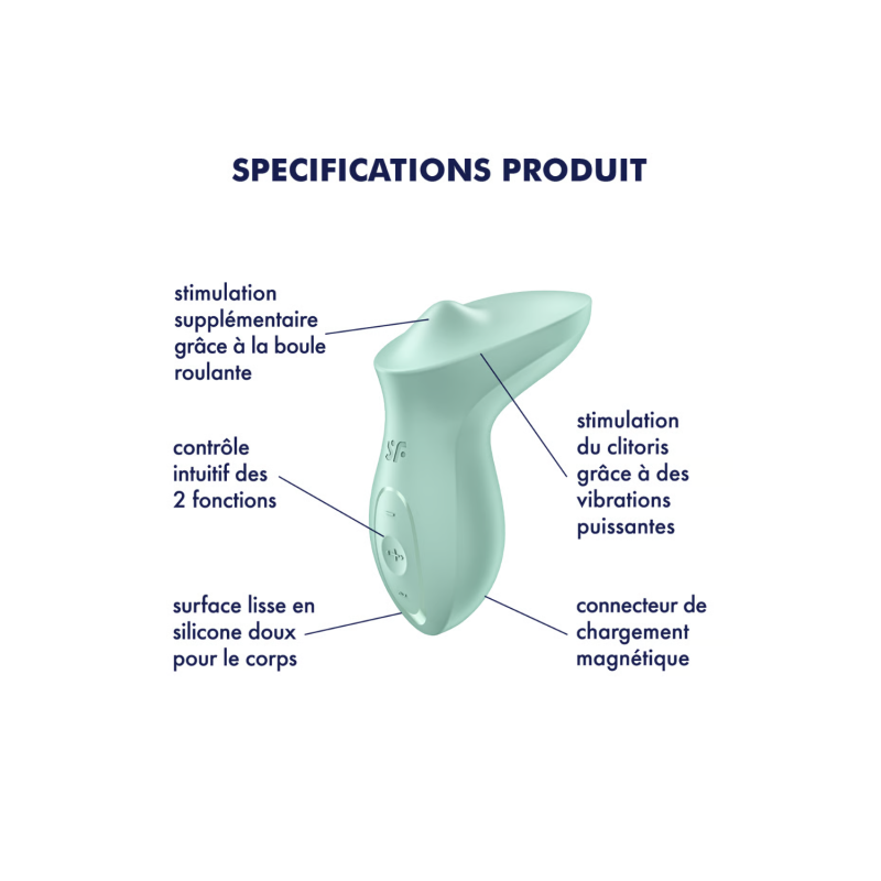 Le Satisfyer Exciterrr est un vibromasseur à poser conçu pour offrir une stimulation précise et polyvalente. Il associe vibrations et rotation grâce à une boule interne pour une expérience complète et personnalisable.