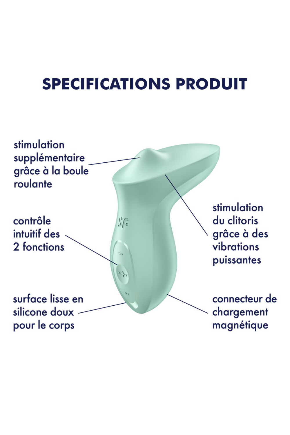 Sa conception unique intègre une petite boule ferme sous sa surface en silicone, qui effectue des mouvements de rotation pour une stimulation ciblée. Sa surface large permet également de diffuser des vibrations intenses sur les zones externes.