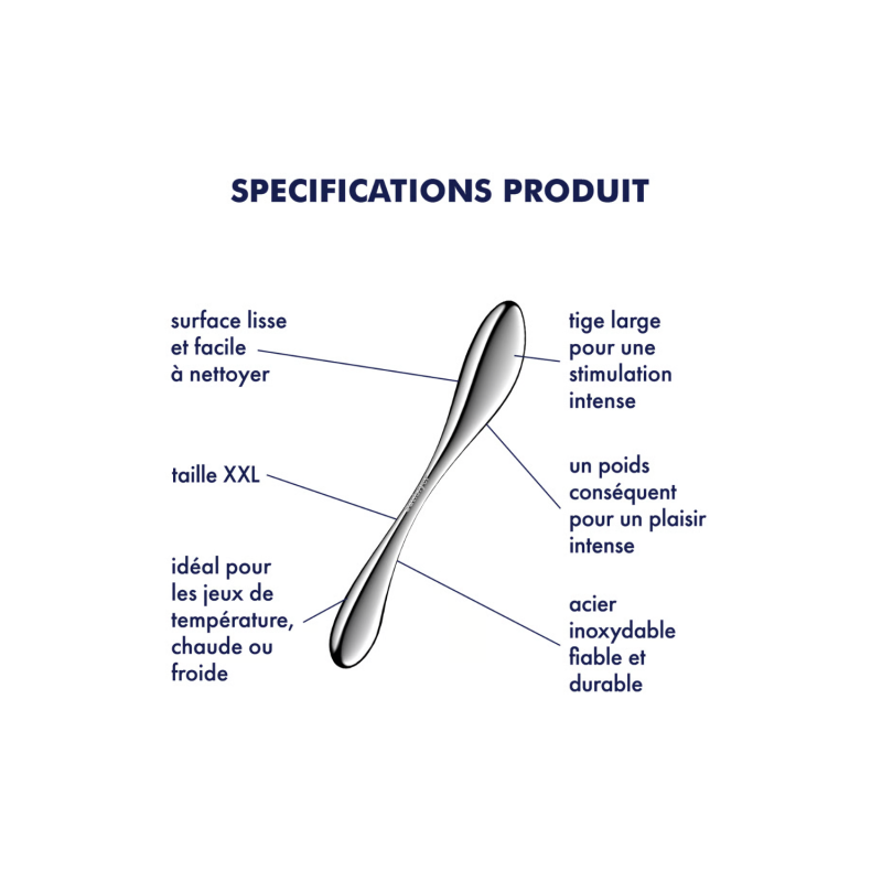Fabriqué en acier inoxydable de haute qualité, il est robuste, hygiénique et parfaitement adapté aux jeux de température. Il peut être utilisé chaud ou froid pour varier les sensations selon les préférences.