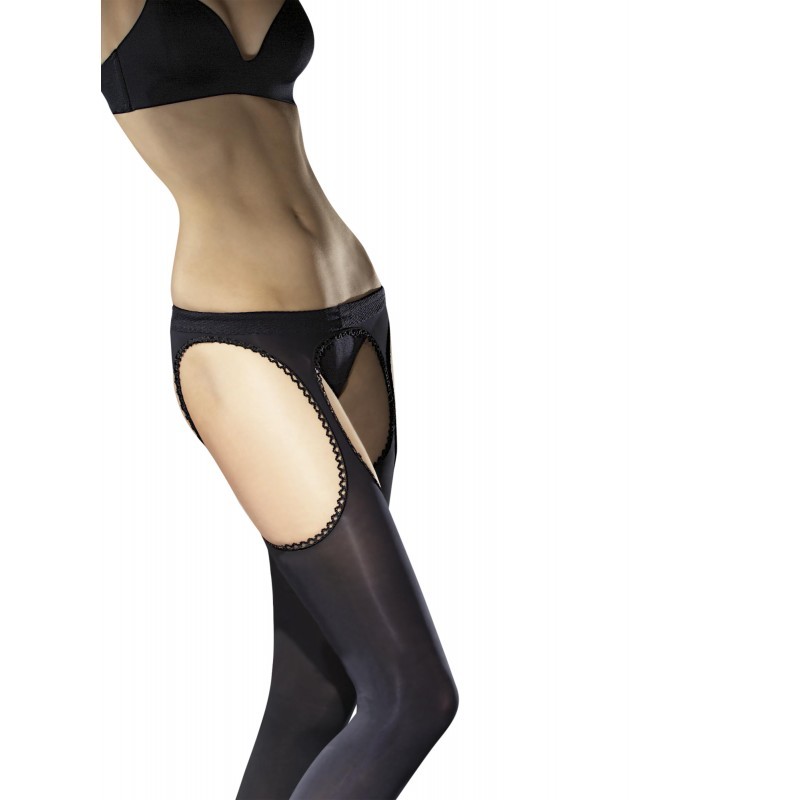 Séduisant bas noir. Ouverture arrondi et sexy au niveau des cuisses. Composition : 82% Polyamide, 16% Élasthanne