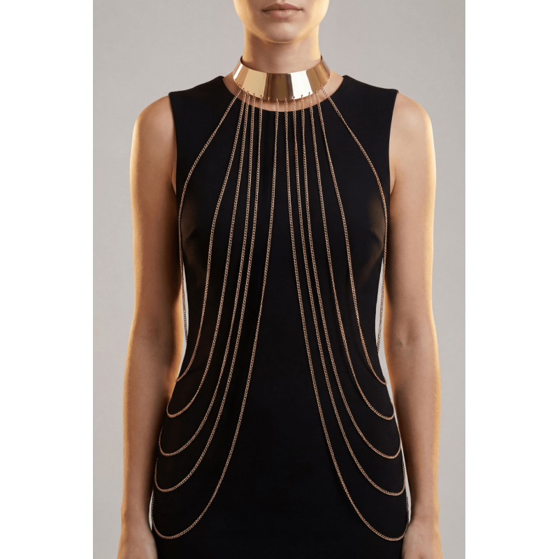 Sublimez votre corps avec cette magnifique Chaine de Corps effet doré avec large cou doré. Ce bijou de corps est à porter sur une robe ou un top noir pour la faire sublimer l'ensemble ou simplement sur votre corps nu.  La marque BE LILY Accessoires va sublimer votre silhouette.