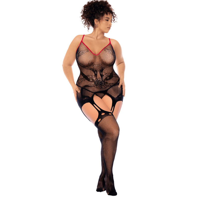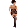 Combinaison intégrale grande taille en résille noire à motif serpent - Mapalé