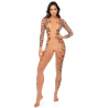 Combinaison en résille léopard à manches longues imprimées, ouverte à l’entrejambe - Mapalé