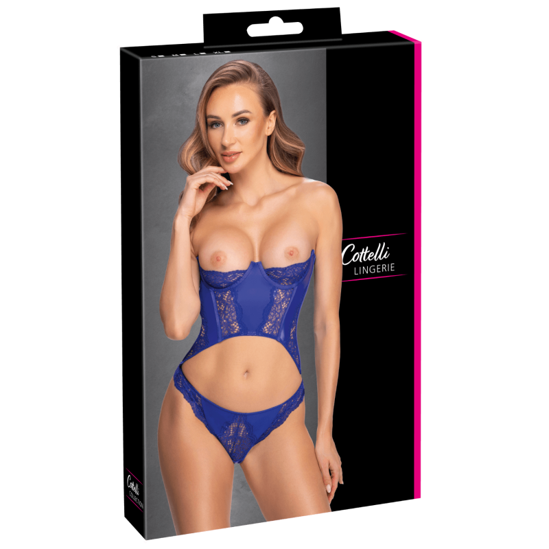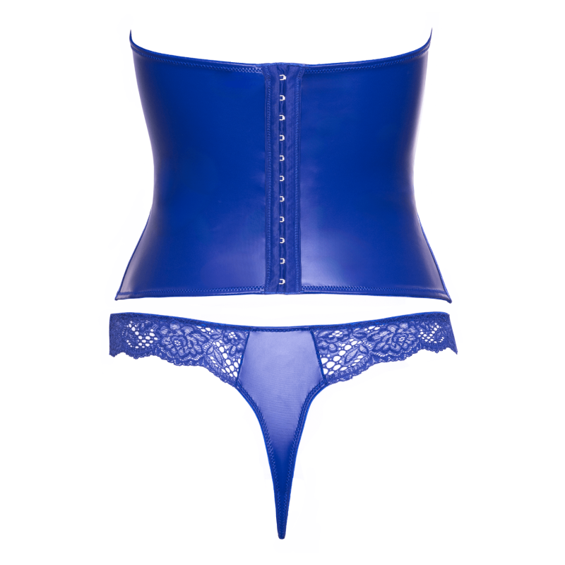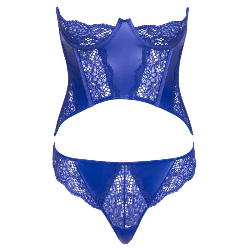 Ensemble corset bustier bleu royal avec string - Cottelli