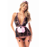 - Composition de l’ensemble : Babydoll, string, tablier, accessoire de tête