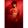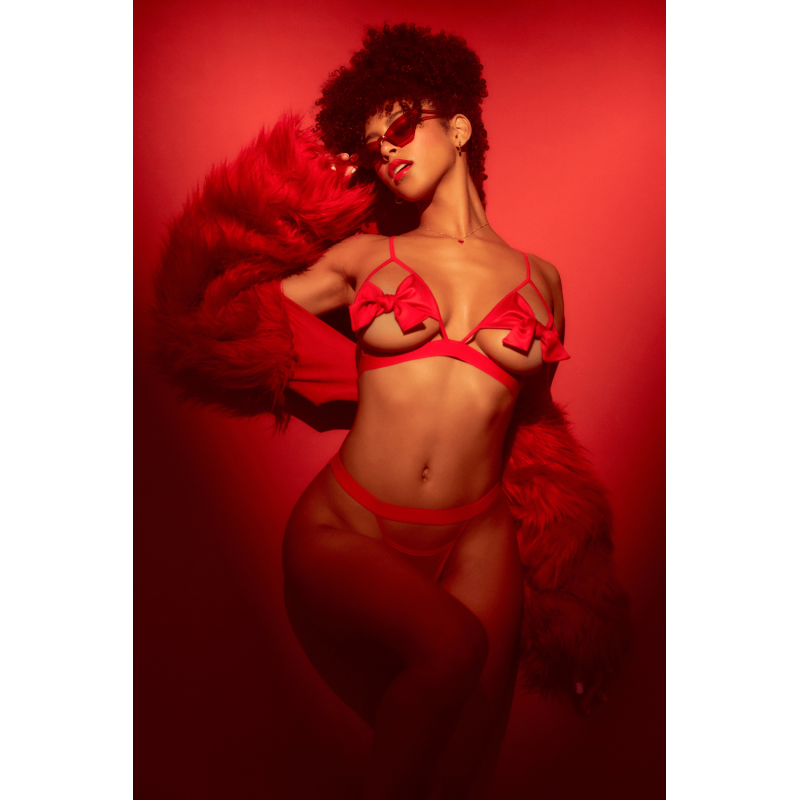 Devenez le cadeau le plus sexy de la saison avec cet ensemble deux pièces audacieux signé Mapalé. Conçu pour séduire, il associe un haut à bonnets ouverts, orné de détails en nœud espiègles, à un string assorti coordonné.