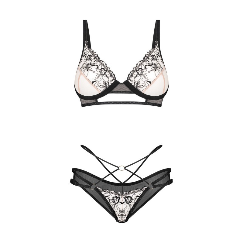 L’ensemble se compose d’un soutien-gorge et d’une culotte au design unique. Sa coupe originale ornée d’un motif botanique attire l’attention. Une combinaison intrigante de matériaux de haute qualité qui accentuera la beauté de la figure féminine.