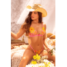 Ensemble lingerie rose et jaune en maille transparente signé Mapalé. Ce modèle associe des teintes lumineuses à une broderie florale délicate, apportant une touche à la fois romantique et moderne.