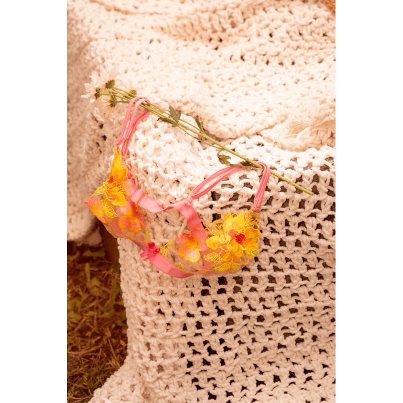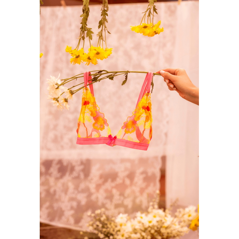 Ensemble lingerie rose et jaune en maille transparente brodée – Mapalé