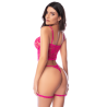 Ensemble lingerie rose en dentelle avec porte-jarretelles – Mapalé