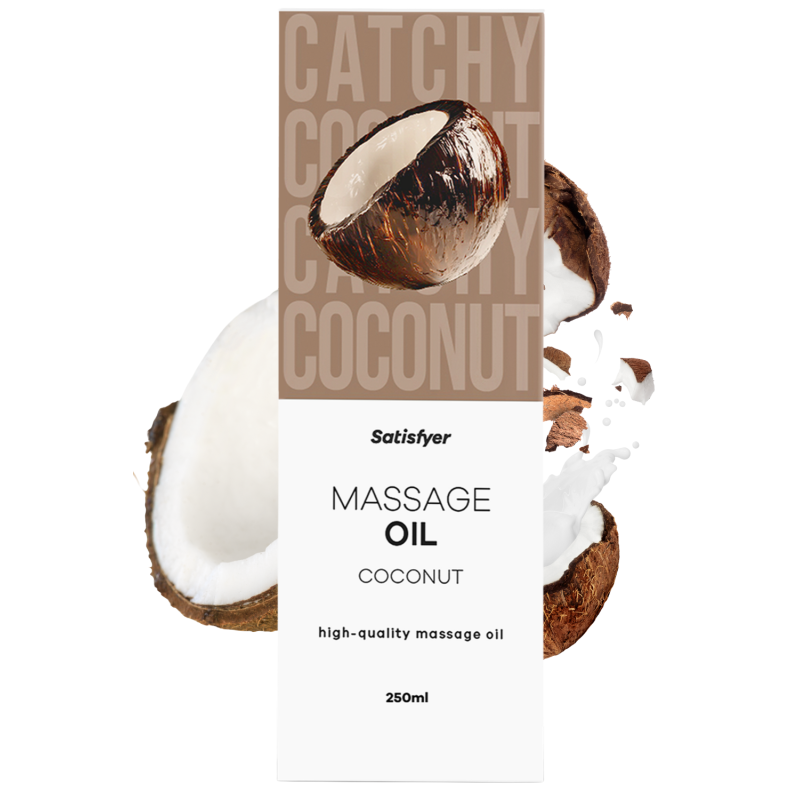 Huile de massage exotique au parfum sucré de noix de coco, pour des instants tropicaux, sensuels et dépaysants, de votre distributeur Satisfyer cosmétiques érotiques.
