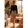 Jupe courte Clara en résille transparente imprimé léopard, une pièce audacieuse et ultra-féminine pensée pour celles qui aiment affirmer leur sensualité avec style. Son tissu en résille fine et légère laisse délicatement entrevoir la peau, tout en jouant la carte du mystère grâce à un motif léopard sauvage et intemporel.
