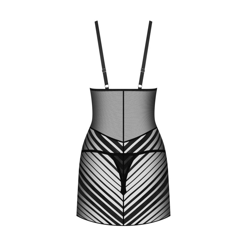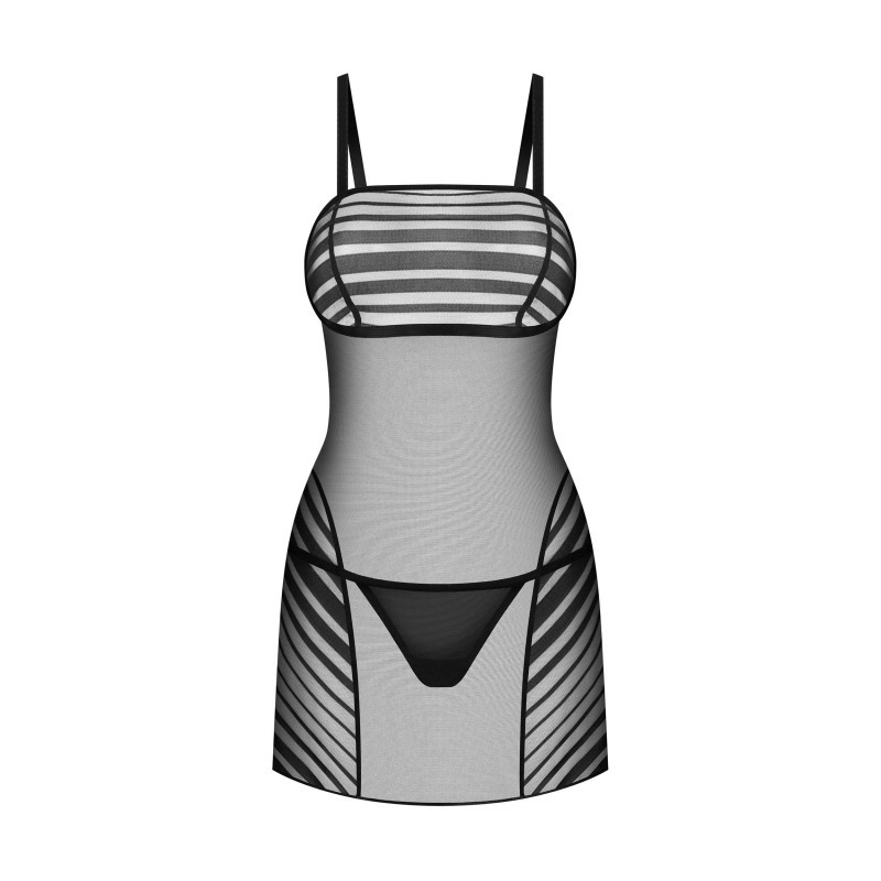 Lingerie de luxe qui met en valeur votre beauté naturelle. Cette nuisette mi-cuisse enveloppe votre corps dans un tissu transparent orné de rayures noires sur le buste, les hanches et les fesses. Bretelles larges et réglables pour un ajustement parfait. Fabriquées à partir des tissus les plus fins et les plus doux pour un confort ultime.