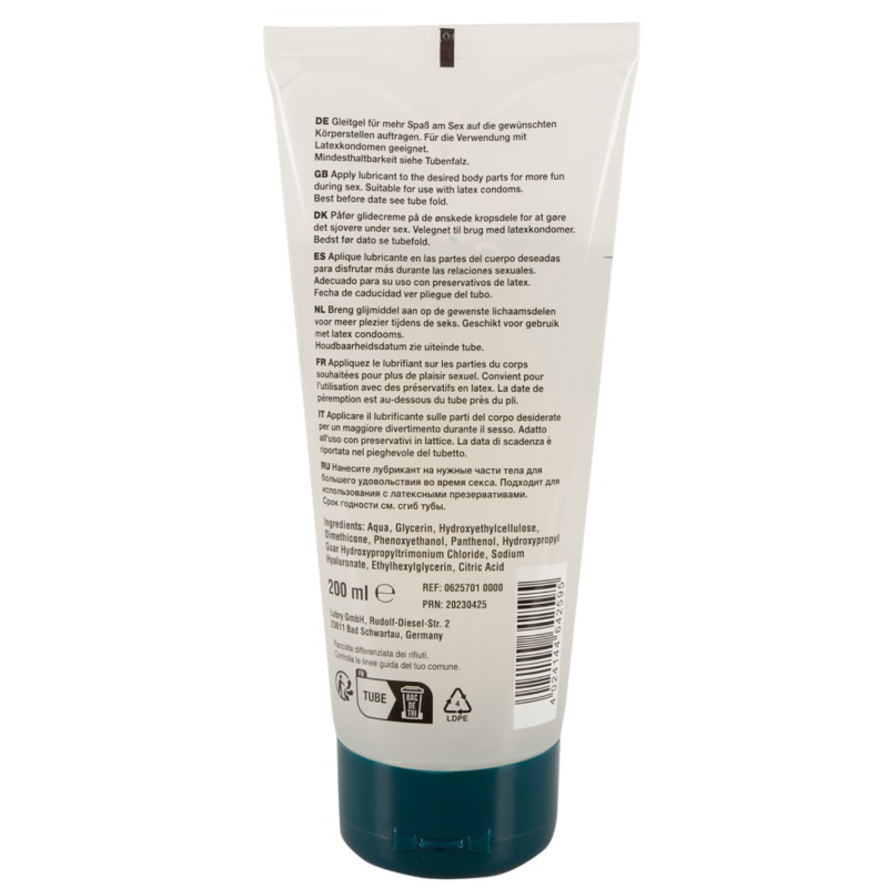 Le pH est adapté au plaisir anal, et la texture du gel est extra souple grâce à l’hyaluron. Le panthénol contribue à apaiser et à soutenir la barrière cutanée. Compatible avec les préservatifs en latex, ce lubrifiant est neutre en goût et en odeur, et se rince facilement après usage.