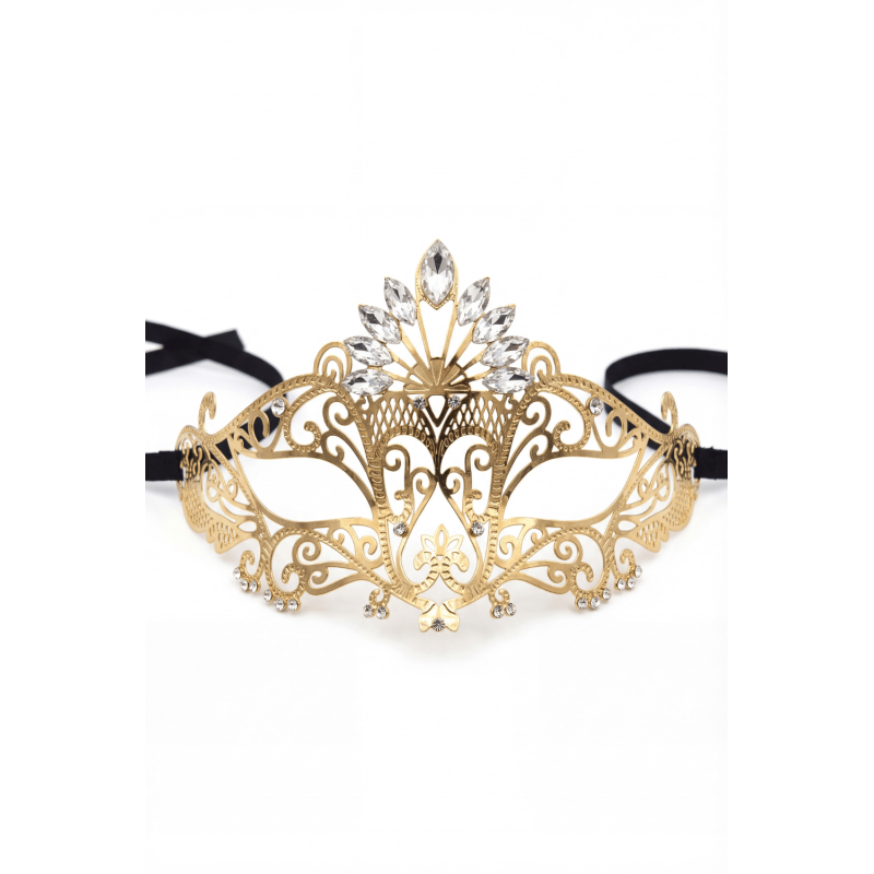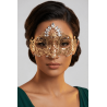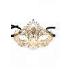 Masque vénitien Gemma rigide doré avec strass. Attache par liens.