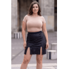 Jupe longue noire en simili cuir avec large ceinture - jupe courte Natacha , jupe de la collection Be Lily