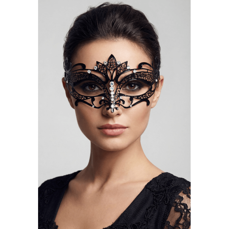 Masque vénitien Asia noir avec strass de votre grossiste Be lily Accessoiresvente en gros et dropshipping de masques vénitiens en métal et strass.