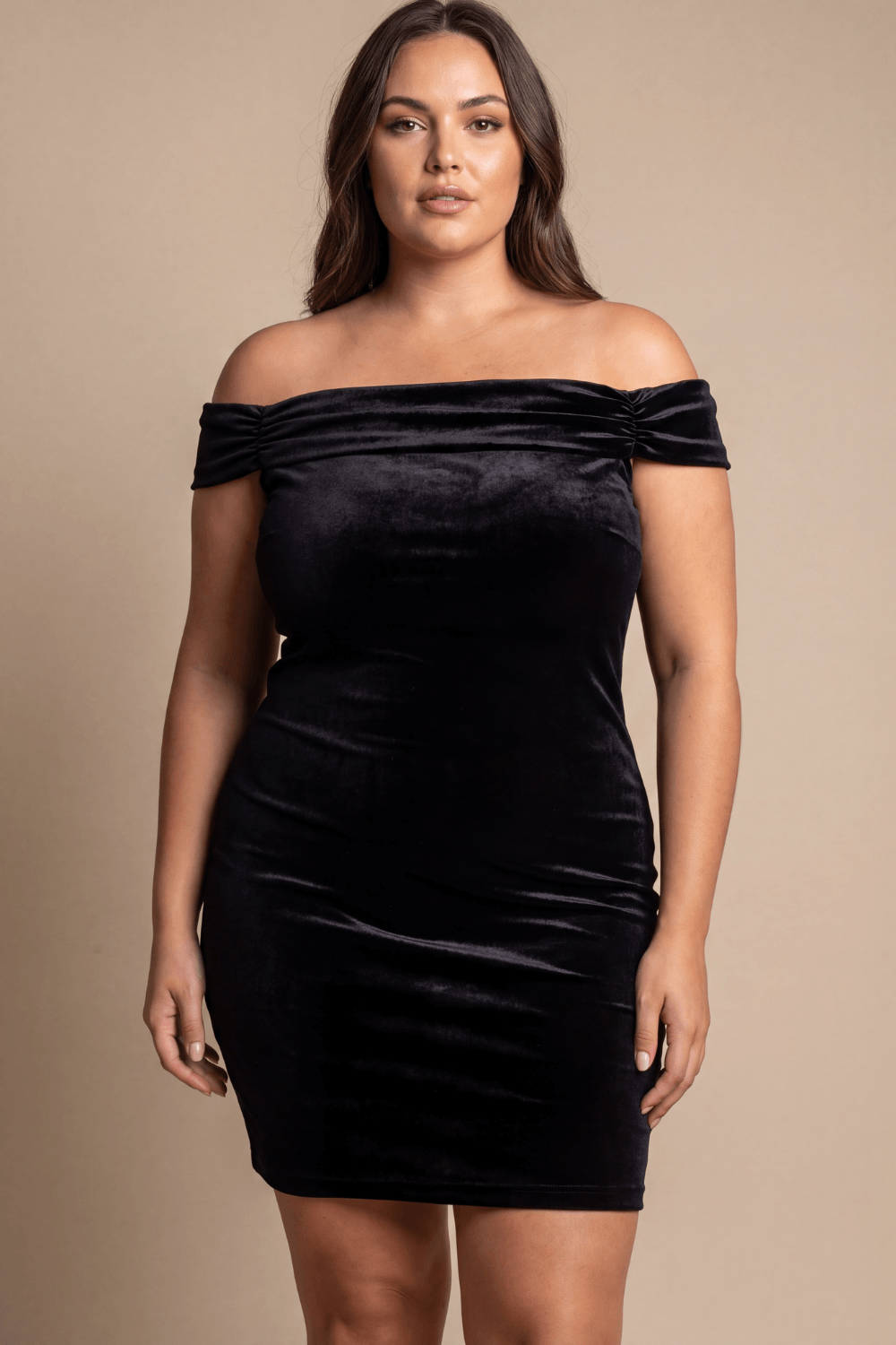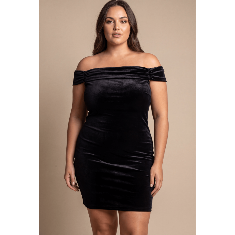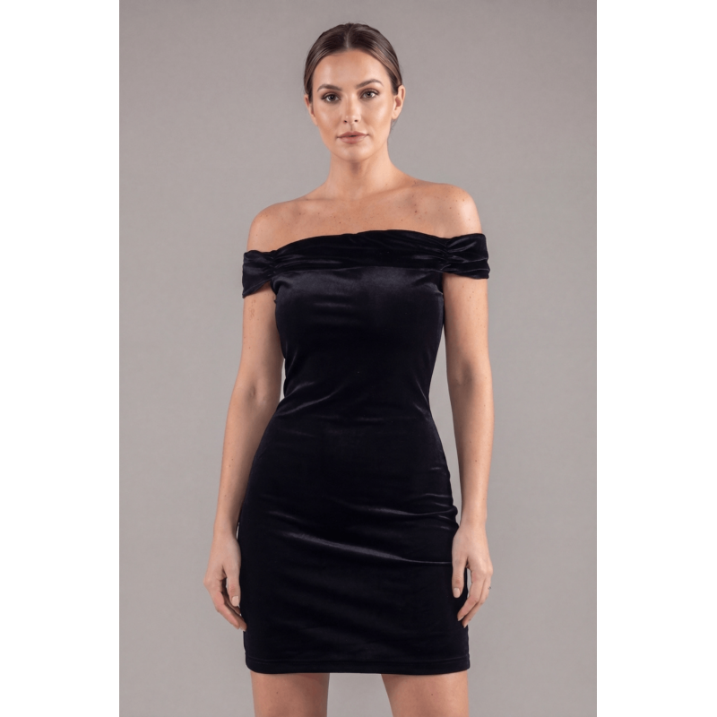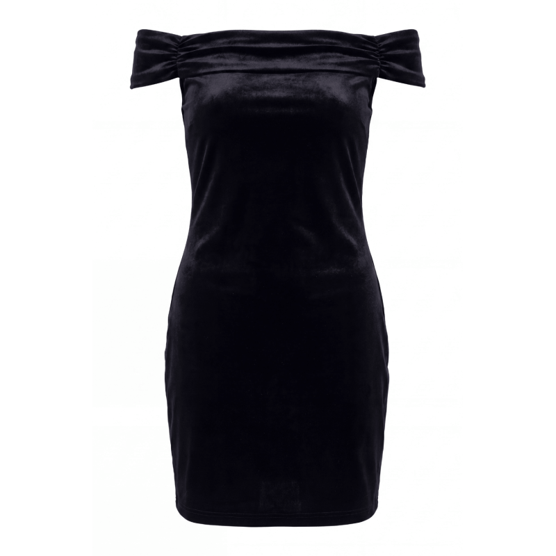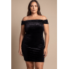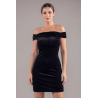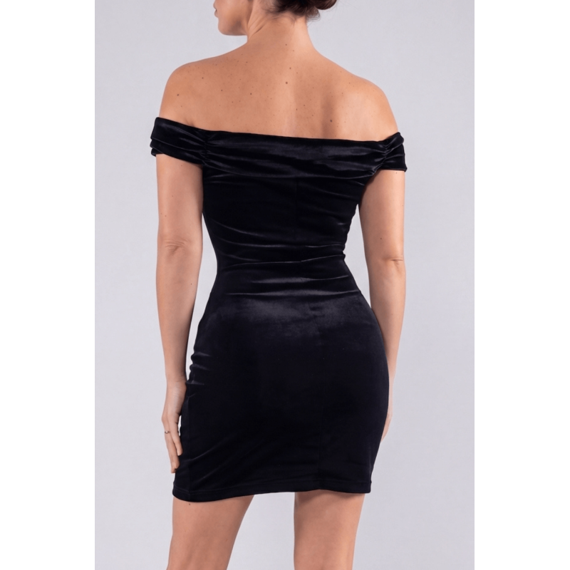 Robe sexy en velours noir avec épaules nues de votre fournisseur Be lily, vente en gros et dropshipping de robes et jupes sexy.