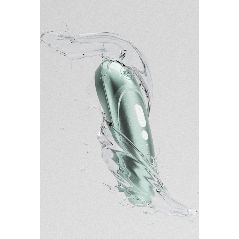 Ce stimulateur turquoise sans contact signé Womanizer se distingue par son format compact et sa technologie Pleasure Air.