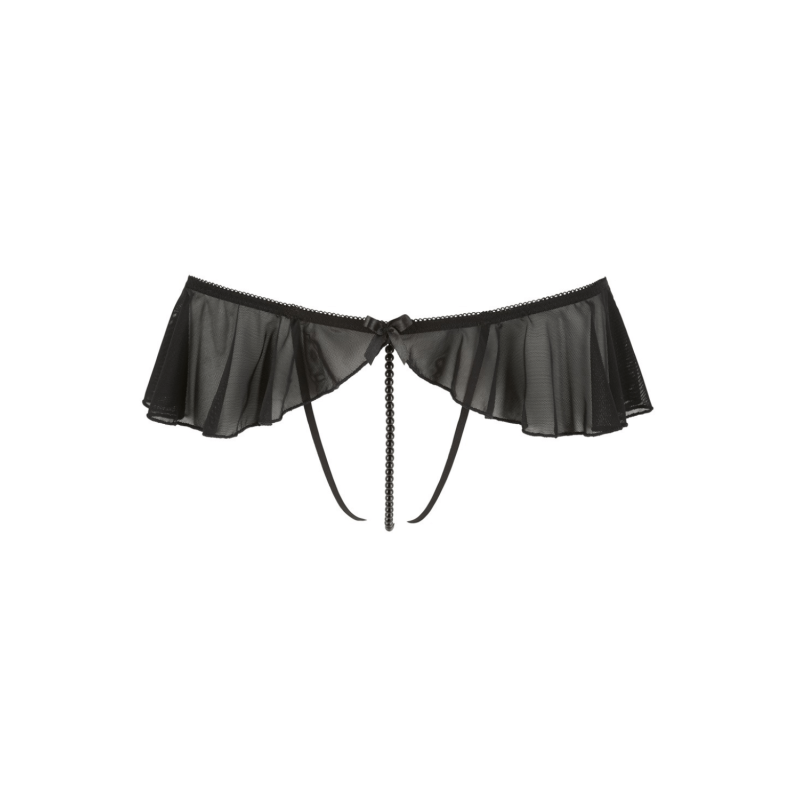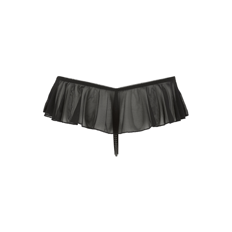 String ouvert à volants & perles noires - Cottelli