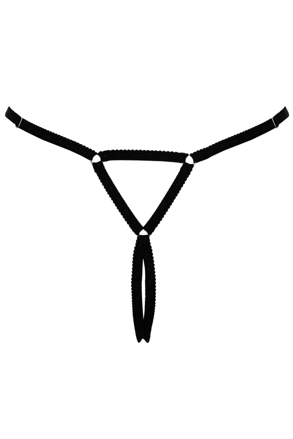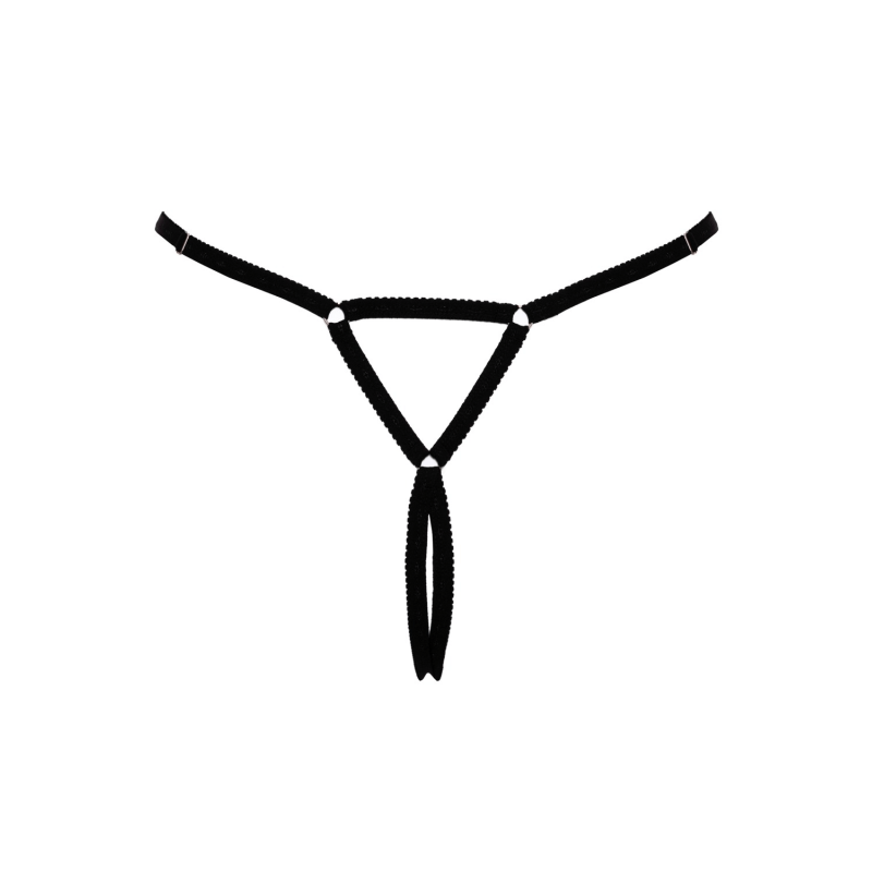 À l’arrière, le triangle ouvert accentue le caractère provocant de la pièce, tandis que l’ouverture accueillante à l’entrejambe invite à la séduction assumée.