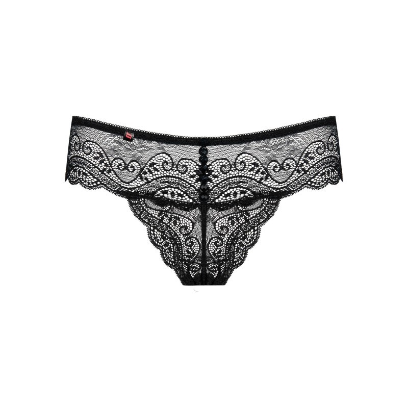 String sexy de fine dentelle de la marque de lingerie Obsessive. Un string noir particulièrement élégant d'une dentelle aux motifs glamour qui forme une large ceinture. Ce string coquin est composé de 90% polyamide 10% elasthane.